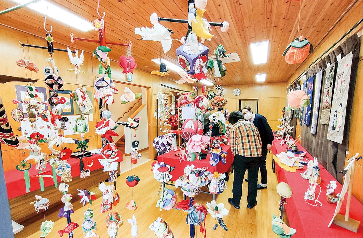永田北の永田町上第五町内会文化部による「つるし飾り」の展示会が5月13、14日に同町内会館で行われた。