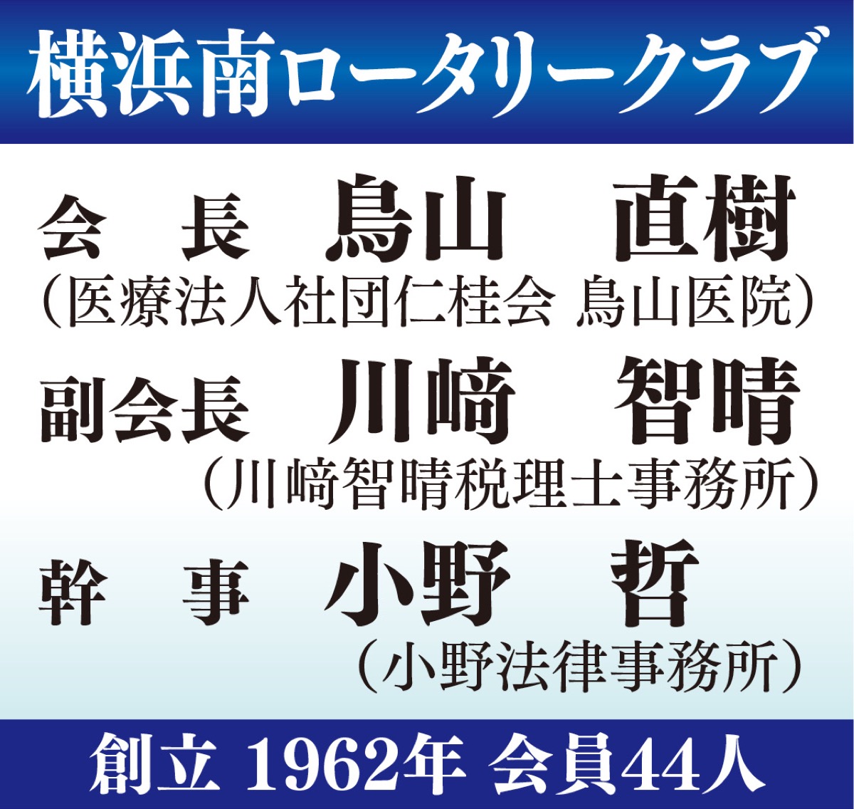 横浜南RCは南区内の3つのRCでは最も古い。昨年度は南区が実施する保育園児の交流行事「みなっち杯えきでん」に協力。自由帳を寄贈するなどした。今年3月には、外国人留学生らに日本の文化を体験してもらう企画を行っている。