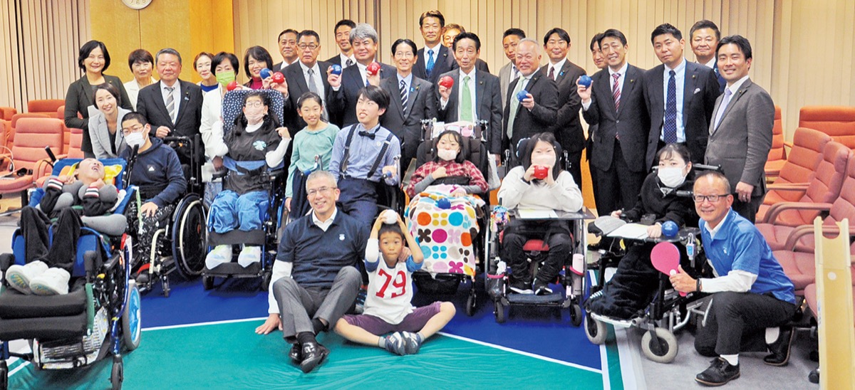 超党派の県議会議員57人で構成する「県議会ユニバーサルスポーツ振興議員連盟」は12月6日、パラリンピックの正式種目でもある「ボッチャ」を通じ、障害者と交流する体験会を県庁新庁舎で行った。