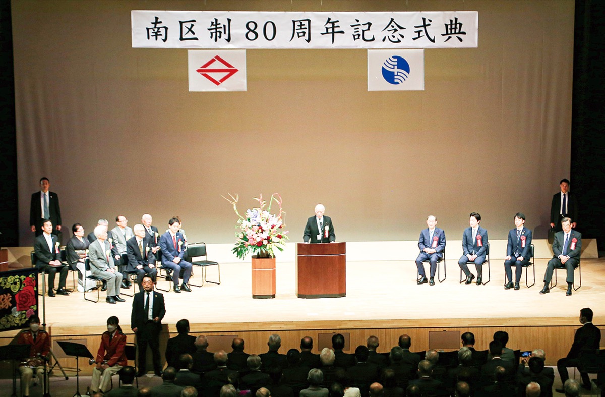 「記念事業実行委員会や地域の皆さまが関係機関と連携して取り組んでいただいたことに感謝しています。12月1日の記念式典には多くの方に来ていただき、一緒にお祝いをすることができました。皆さまからお話を伺うと、南区がこれまで積み重ねてきた歴史の重さを感じ、区の発展のために誠心誠意努めていかなければならないと改めて決意しました」