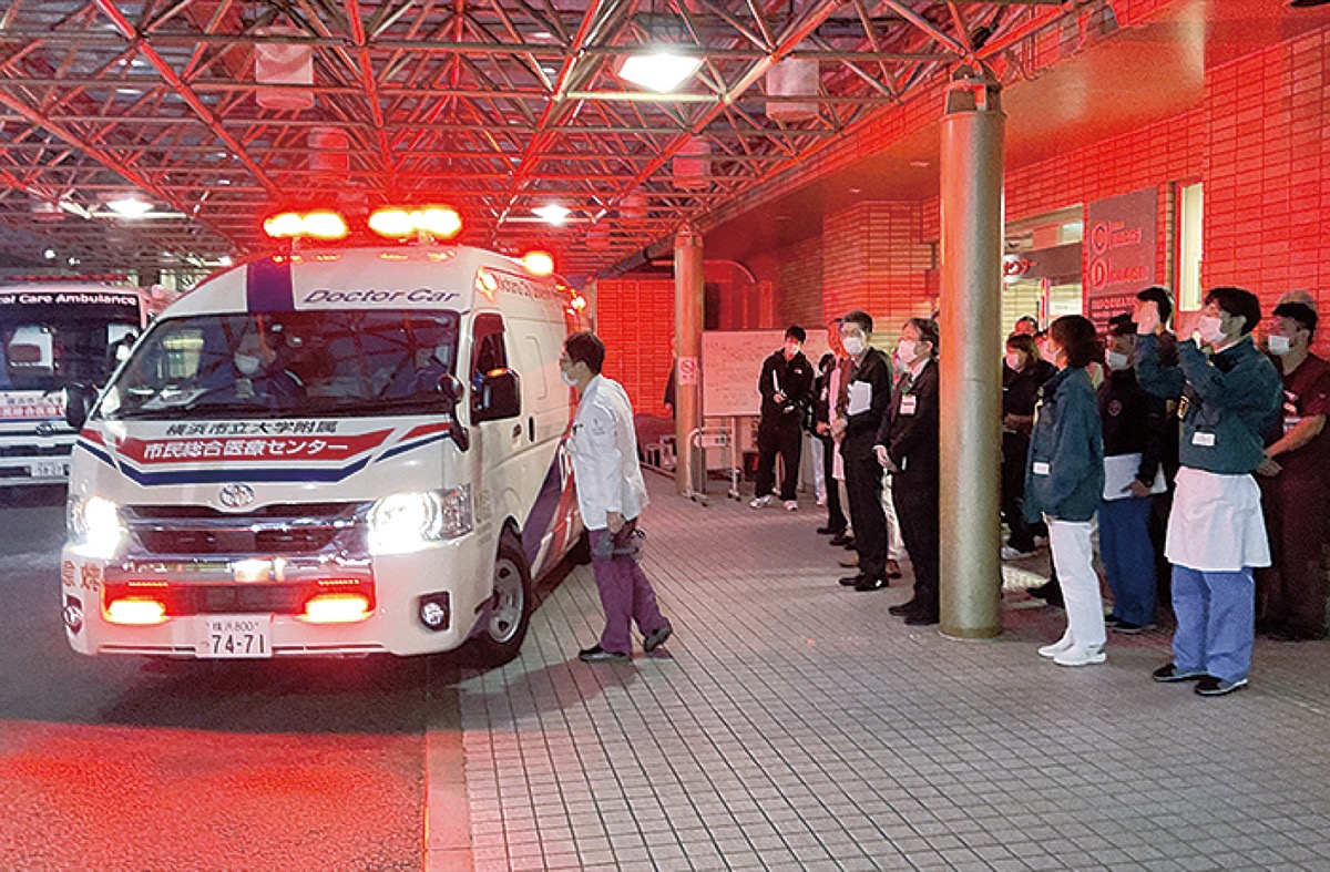 横浜市立大学附属市民総合医療センター=南区浦舟町=と同附属病院=金沢区=は1月11日、石川県からのDMAT(災害派遣医療チーム)の派遣要請を受け、珠洲市保健医療福祉調整本部に向けて出発した。