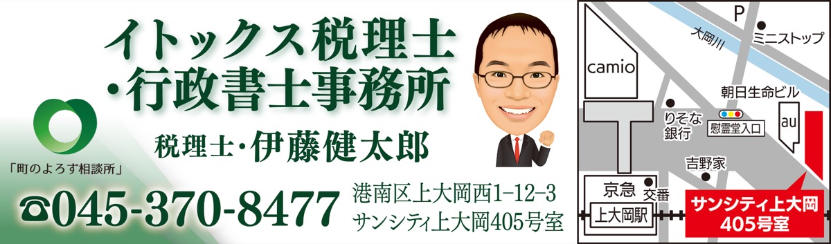 上大岡に事務所を構える伊藤健太郎税理士が2月17日(土)と18日(日)の2日間、無料相談会を開催する。時間は午前8時から午後8時まで。事前予約制の個別相談会で時間は一人1時間。会場は上大岡駅徒歩3分のイトックス税理士・行政書士事務所。