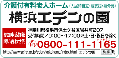 昨年春に開園以来、地元密着型の介護付有料老人ホームとして地域に親しまれている『横浜エデンの園』(保土ケ谷区岩井町・原田さち子園長)では今年度、誰でも気軽に参加できる無料の「ミニセミナー」を企画。参加者を募集している。