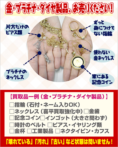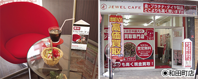 全国250店舗突破、日本最大級の買取ネットワークを誇る『ジュエルカフェ』では、大手専門店ならではの便利な各種サービスも大きな魅力。左図のような、他店では買取NGだったり、換金に時間を要するような商品も、金・プラチナ・ダイヤ製品であれば状態を問わず査定大歓迎!「鑑定書をお持ち頂ければ、より高く査定ができます。また、まとめてお売り頂きますと、査定額がさらにアップするのでお得ですよ!」と女性スタッフも笑顔で利用を呼び掛けている。なお、査定はもちろん何点でも無料(買取の際は身分証が必要)。本格的な夏休み到来を前に、ちょっとしたお小遣いをゲットしたい方も、ぜひ一度足を運んでみては。
