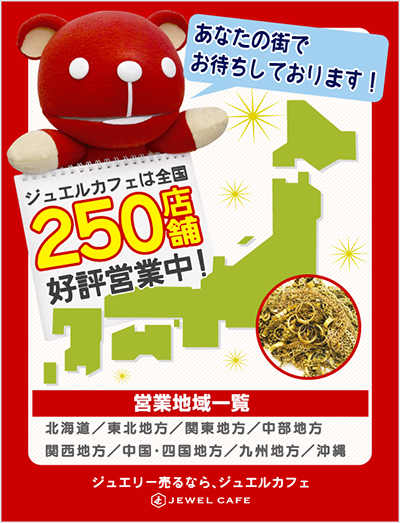しかし業界最大手の買取専門店『ジュエルカフェ』なら、そんな心配は一切無用!潤沢な資金を活かした高価査定が評判を呼び、今や来客数は”うなぎのぼり”状態。相場高騰がいつまで続くか分からない状況のため「ご自宅に眠っているジュエリーがありましたら、ピアス1点からでもOKですので、ぜひお売り下さい。もちろん他店との見積り比較や金額の上乗せ交渉なども大歓迎ですよ」とスタッフも、早めの利用を呼び掛けている。もちろん査定は点数に関わらずいつでも無料。まずは一度、気軽に相談してみてはいかが?