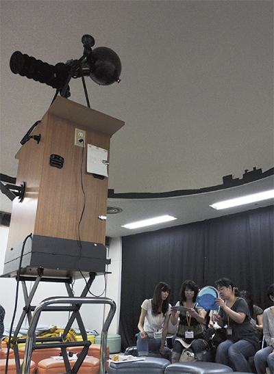 さらに同小学校では、この設備の”復活”を、より多くの人に知ってもらおうと「保護者向け上映会」を先月26日に実施。PTAが主催となり、機器の操作から星座の解説アナウンスまで運営もすべて保護者が担当した。開催前、夏休みを利用して副校長から上映に向けてプラネタリウム機材に関するレクチャーを受けていた保護者たち(写真)は、練習の成果もあり無事、大役を務め上げホッとした表情をみせていた。