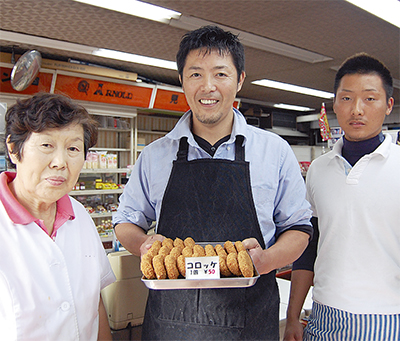 このコロッケは、挽き肉をたっぷり使った味わい深さが特徴。平成21年に横浜市が市民投票で10商品を選んだ「街なかちょい土産」にも認定されている人気商品。投票結果の中間発表でも首位を独走し続け、金賞の有力候補と目されてきた。しかし、結果発表の直前、磯子区の「三角コロッケ」(グルメショップカネヒラ)に抜かれ、惜しくも金賞を逃した。周囲からは「ずっと1位だったから、ライバル店のファンが終盤になって投票に力を入れたのでは」と結果を残念がる声も聞かれ、店長の見上さんは「機会があればぜひリベンジしたい」と話していた。