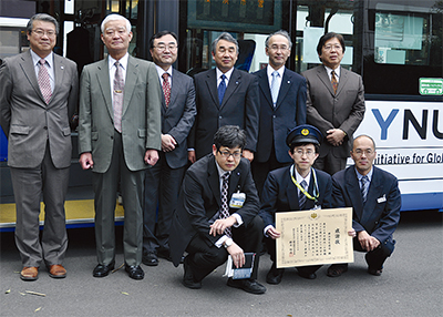 横浜国立大学(常盤台)ではこのほど、構内への市営バスと相鉄バス乗り入れ開始から1周年を迎えた。これを機に4月17日、学長の鈴木邦雄氏から、横浜市交通局と相鉄バス株式会社に感謝状が授与された。