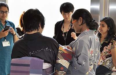 横浜国立大学(常盤台)に5月15日と21日、国際交流プログラムの一環でインドの高校生100人が訪れた。高校生らは実際に和服を着付けてもらうなど、日本文化に触れる機会を楽しんでいた。