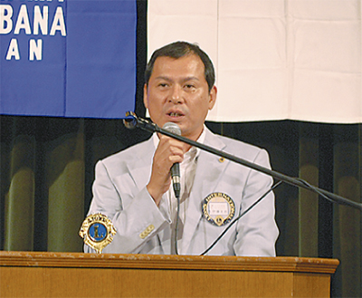 レストラン船「ロイヤル・ウイング」内で行われたこの日の催しには、同クラブメンバーと家族の他、近隣地区のライオンズクラブ関係者も出席。情報交換や交流を図っていた。