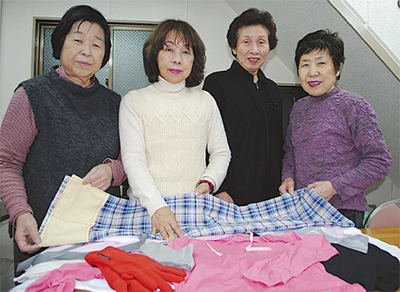 メンバーが防災頭巾の作り方を教える出張講座では、この他にも、タオルやTシャツを使った三角巾、レジ袋を使ったオムツなど、主婦ならではの発想を活かした知識を広めている。