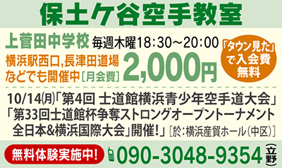 とはいえ、いきなり道場の門を叩くのは勇気がいるもの…。そんな人にも安心の空手教室が、保土ケ谷区内の上菅田中学校で開かれている。