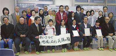 1月22日にケアプラザで行われた表彰セレモニーには受賞した5人と保護者などが出席。田中会長から表彰状と記念品を受け取り、晴れやかな表情をみせていた。最優秀作品は今後地域のキャッチフレーズとして印刷物や掲出物などに記載される予定となっている。