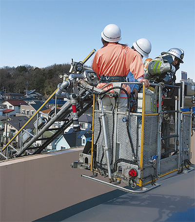 同施設では、年2回定期的に消防訓練を行っているが、今回のような大掛かりな訓練ははじめて。「この訓練を契機にさらに防災力を一歩一歩進めていきたい」と参加者は感想を語った。