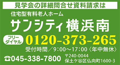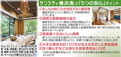 区内・仏向町にある、市街を一望できる緑豊かな高台に2013年6月にオープンした住宅型の有料老人ホーム「サンシティ横浜南」(全190室)が、昼食付の「無料見学会」を実施。現在参加者を募っている(組数限定/要予約)。