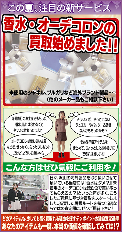 「売って嬉しい、買って楽しいお店作り」をモットーに、地元密着型のサービスを実践。多くの支持を集める『テンポイント』では、新たに「香水・オーデコロン買取り」をスタートした。