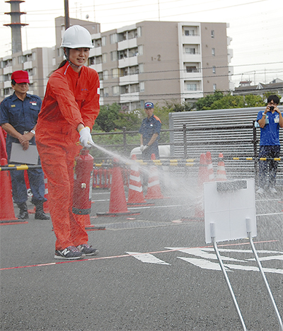 区内にある事業所の従業員や病院の職員等で構成された自衛消防隊員が参加するこの訓練会に、14事業所の62人が参加。各隊員が消防技術を発揮する場として、毎年定期的に開催されている。消火技術をタイムや得点に換算する形式で、3つの種目で訓練の成果を競い合った。自衛消防組織連絡協議会の浦田伸彰会長は、「今日の訓練会で得たものを、それぞれの職場でいかしてほしい」と、参加者にエールを送った。