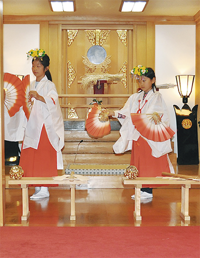 毎年、七五三の時季には多くの人が参拝する星川杉山神社。当日は、神主が七五三を迎えた子どもたちの健康を願う「祝詞(のりと)」を奏上する。その後、子どもたちが自分自身で成長を祝福できればと企画された「巫女舞」を実施。小学1年生から4年生までの有志で集まった女子児童ら7人が、巫女の装束を身にまとい舞を披露する。「太鼓と笛に合わせて舞う可愛い舞。珍しいものなので、見に来ていただければ」と同神社の平岡理恵さん。