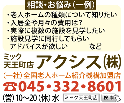 地元密着の不動産店ミック天王町店・アクシス(株)では、老人ホームに関する相談を無料で受付中。