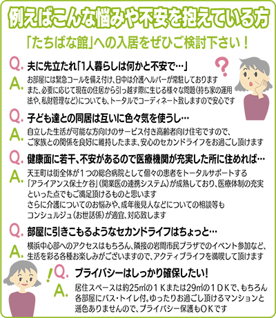 天王町のサービス付き高齢者向け住宅「たちばな館」