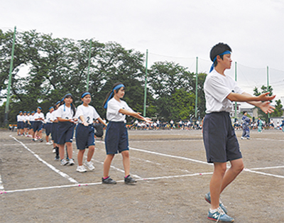 上菅田中学校(佐塚久信校長)で5月22日に行われた体育祭で、生徒が区の歌「わがまち、保土ケ谷」の音頭バージョンを披露した。同校では花笠音頭を踊ってきたが、「地元の音頭を」と、今年から取り入れた。