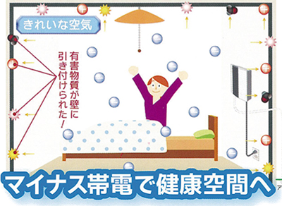 炭塗料に電気を流すことでマイナスイオンの多い状態を構築。室内環境を改善し、「森林浴」の効果に近い環境が生まれるというこの塗料システムを使った住宅を手掛けている和田の昭和建設でも、「健康」や「美容」に対し関心が高い市民を中心に問合せが増えつつあるという。