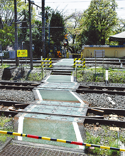 4つの線路を渡り、途中には段差もあり、「過去には高齢者が渡り切れずに列車が緊急停車することもあった」と市の道路局担当者は説明し、歩行者の安全を確保するため、近くに跨線人道橋を設置し踏切を廃止する。2018年度中の完成を目指す。
