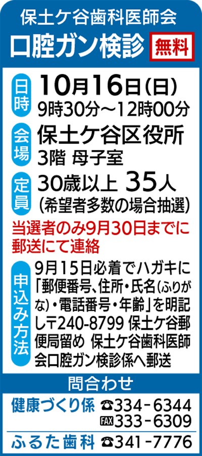 ※保土ケ谷歯科医師会では、年に一度、口腔ガン検診を無料で行っております。