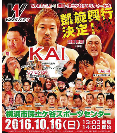 桜丘高校出身のプロレスラー・KAI(本名・境敦史)選手(33)が出場する凱旋興行「WRESTLE-1横浜・保土ケ谷チャリティー大会」が10月16日(日)、神戸町の保土ケ谷スポーツセンターで行われる。