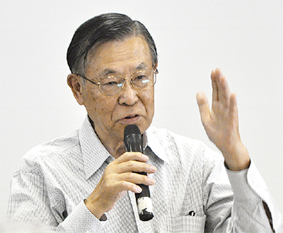 保土ケ谷中学校でこのほど、同窓生を対象に文化講演会が行われた。講師を務めたのは、第7期卒業生で鈴木法科学研究所代表取締役の鈴木隆雄さん(77)。
