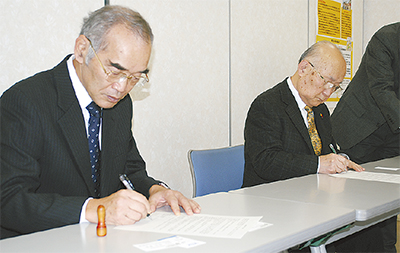 仏向町の食肉加工業者「日本ウインナー(株)」(外狩光治取締役社長)が12月1日、生活困窮者などに食材を無償で提供する取り組みに関し、保土ケ谷区社会福祉協議会(山崎滋会長)と合意書を交わした。