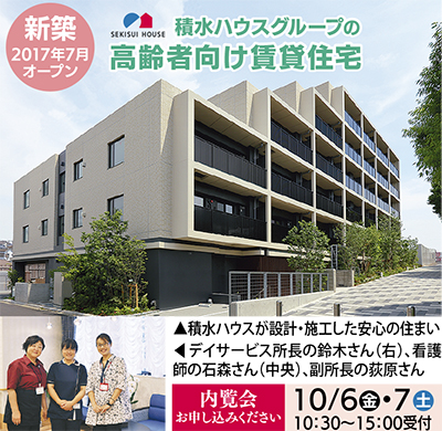 内覧会が10月6日(金)、7日(土)に行われるので、老人ホームではない住まいを探している人や、生活の質を高めたい人、親御さんとの近居を検討している家族の人も、この機会にぜひ足を運んでみては。