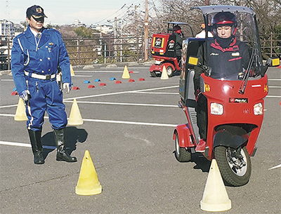 同署では参加実践型の訓練を行い、安全運転の技術と基本操作を再認識してもらおうと講習を企画。この日はピザや寿司の宅配業者ら19人が参加した。