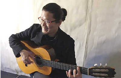 今回は気軽に「フラメンコギター」にチャレンジしてもらおうと、ライブレストランや各地イベントで活躍している盛植俊介氏が、一人ひとりのレベルに合わせて丁寧にレクチャーする。