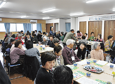 立ち上げの中心的な役割を果たした中央東部地区社会福祉協議会会長の近藤忠行さんは、「高齢者が100歳まで自分の足で歩いて生活できるよう、認知症を少しでも予防するために知恵を出して発信していく場にできれば」と挨拶。「まちづくりコーディネーター」として立ち上げに携わった山路清貴さんは「今回の事をきっかけとして自然に住民同士のつながりができるようになっていければ」と今後について話した。会場では尺八と三味線の演奏に合わせ参加者たちが合唱するなど、和やかな雰囲気に包まれた。