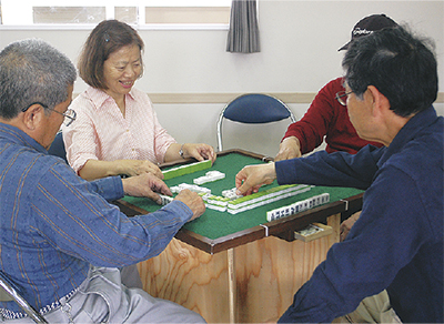 桜ヶ丘に暮らす福本三夫さんが自宅の倉庫を改装し開設した健康麻雀サロン「ふくみ会」(桜ヶ丘2の24の21)が地域の人たちの憩いの場となっている。