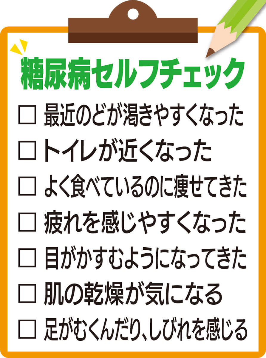 自覚症状の少ない病気だが進行すると全身に合併症が現れる。人工透析が必要な患者の約半数が糖尿病が原因で、糖尿病患者は健常者より平均寿命が約10年短い。