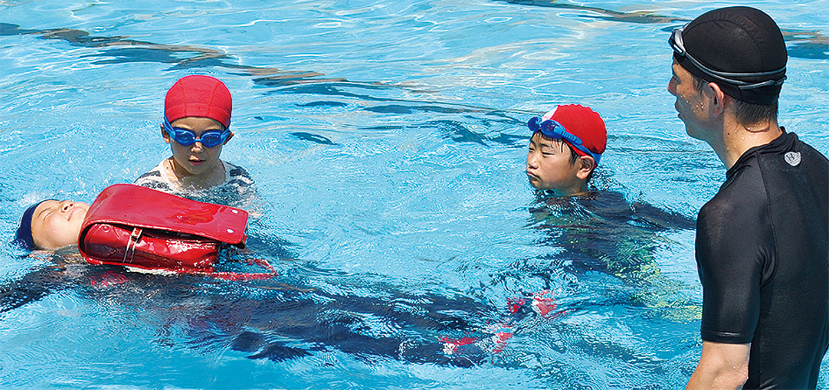 夏休み期間中の小学生を対象に衣服を着たまま水に浮く「着衣水泳」を学ぶ講座がこのほど保土ケ谷小学校の屋上にあるプールで開かれ12人の子どもたちが参加した。