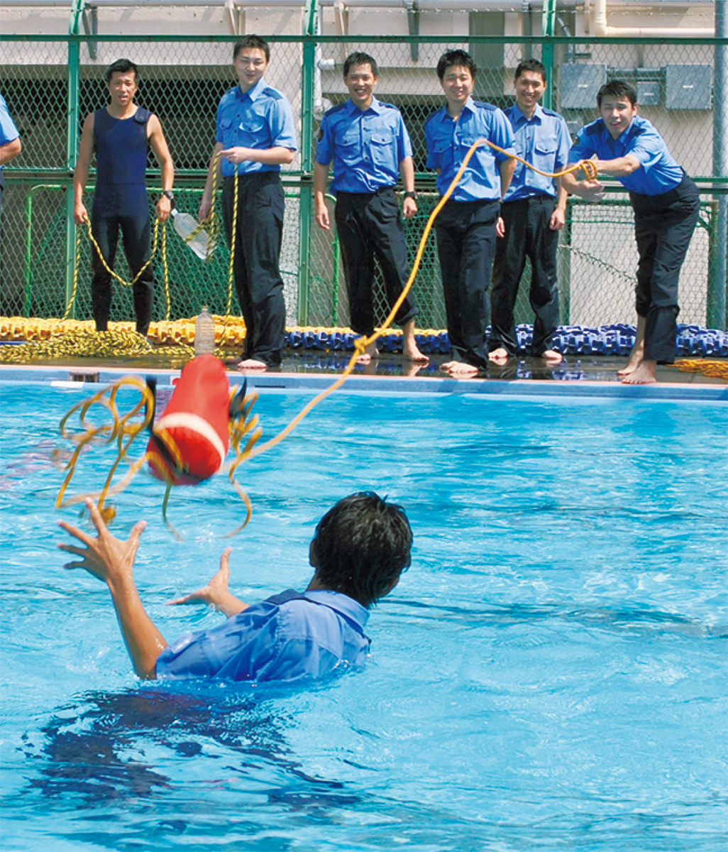 また、ロープを使った救助法やボートの漕艇法などを学んだ。
