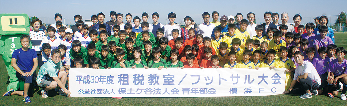 保土ケ谷法人会青年部会による租税教室/フットサル大会がこのほど、サッカーJ2・横浜FCLEOCトレーニングセンターで開かれた。