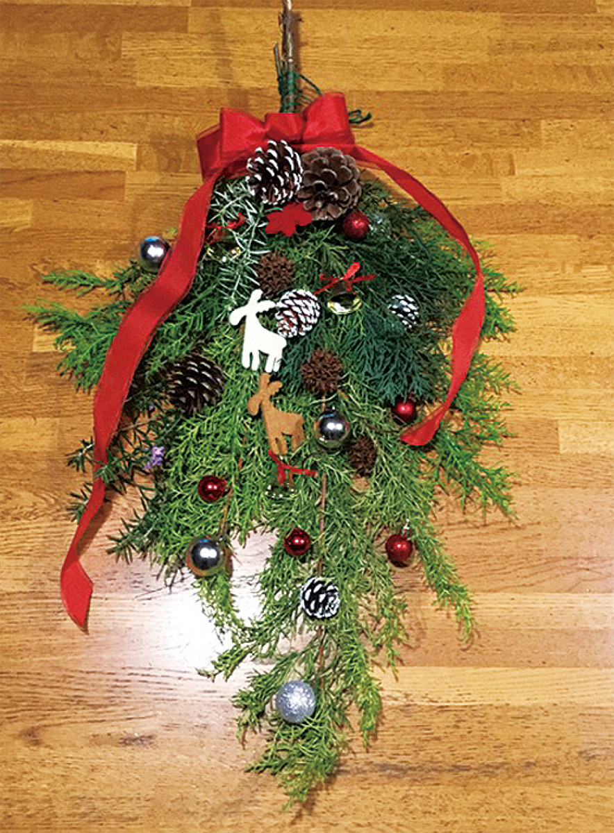 植物クラフト講座などを企画している市民団体「グリーンボックス」(玉木ゆう子代表)が、常緑樹の枝を束ね緑の濃淡や葉の違いを楽しむ欧州の素朴な飾り「ドア・スワッグ」の製作教室を12月8日(土)に星川地域ケアプラザで開く。午前9時45分から11時30分までで参加費は材料費として800円。