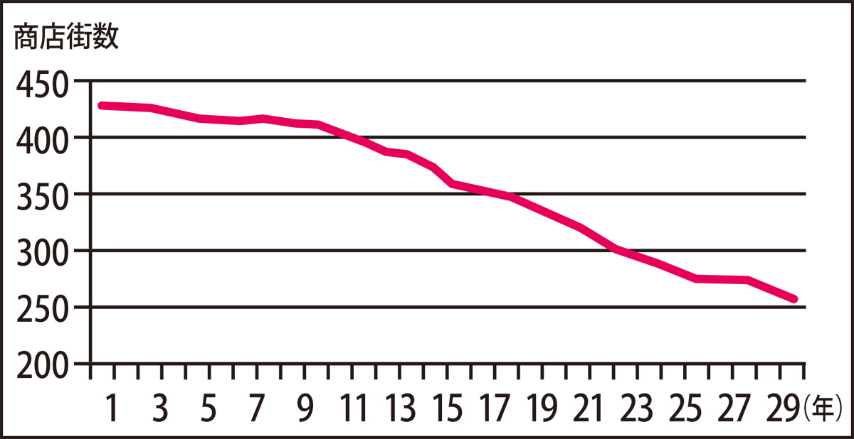 市経済局のアンケートによると、「経営者が65歳以上の店舗が6割を超える」という商店街が24・4%と最も多く(平成27年度)、このままでは遠くない将来に多くの商店街が自然消滅の危機にさらされる。