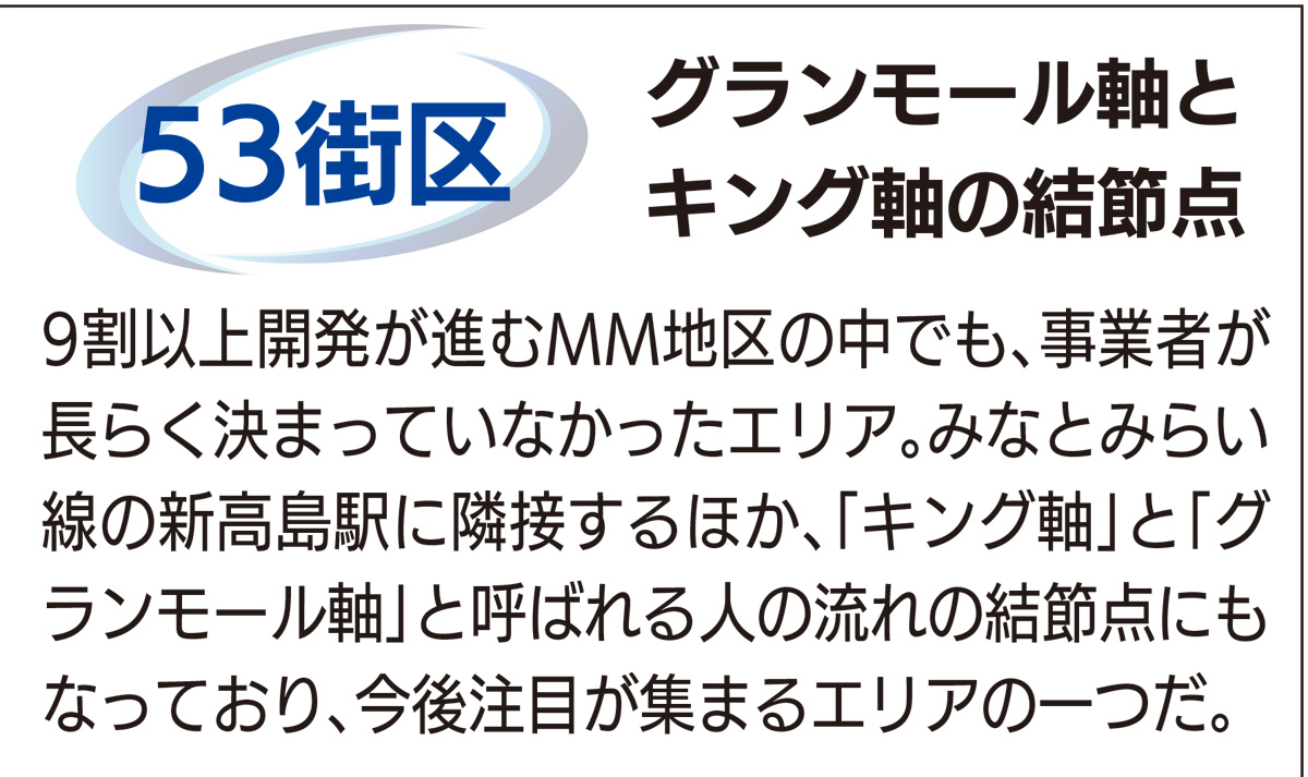 これまで決まっていなかった53街区の開発事業予定者に、(株)大林組・京浜急行電鉄(株)・新日鉄興和不動産(株)・ヤマハ(株)による企業グループが決まった。みなとみらい線新高島駅に隣接する53街区は、4月にオープンした資生堂グローバルイノベーションセンターの向かい。MMでもキーとなるエリアの一つだ。