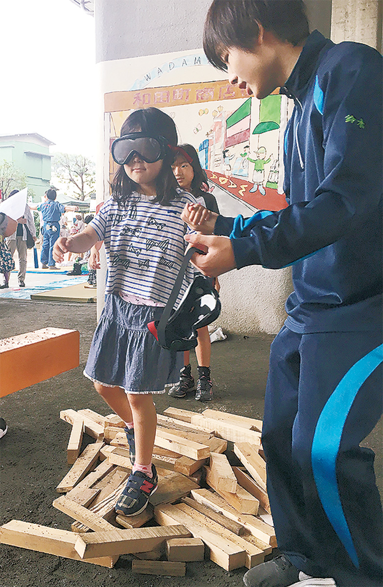 防災フェアは「ありきたりな防災訓練ではなく、楽しみながら防災意識を高め、地域防災力を高めよう」と7年前からスタート。この日は瓦礫を模した木材の上を歩いたり、新聞紙を使い食器を作るなど、「体験」をテーマにした企画が用意され、参加者は楽しみながら「いざ」に備えた。