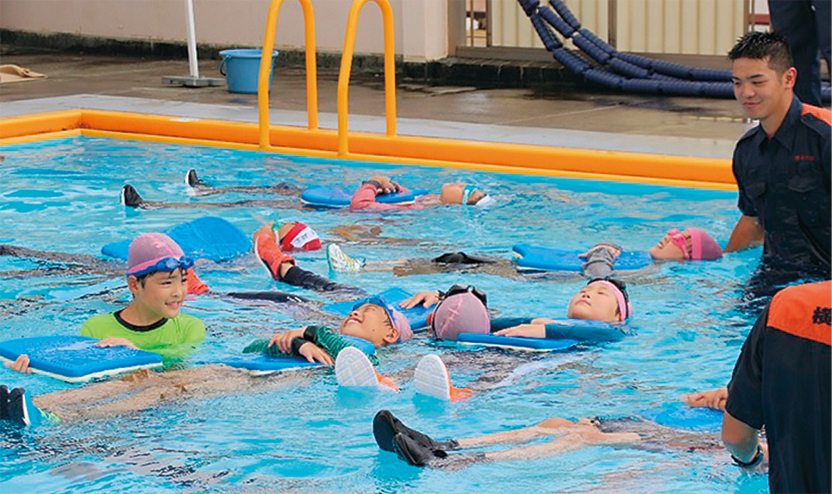これは、水の事故から命を守る心構えを学んでもらおうと、保土ケ谷消防署が企画したもので、この日は同署の職員が着衣での入水による動きの体験や誤って海や川などに落水した時の対処法、ペットボトルなど身の周りにあるものを利用した方法などをレクチャー。参加者からは「洋服を着ていると、体が重くて、いつものように泳げなかった」「実際に水に落ちた時は落ち着いて行動できると思う」などと感想を話した。