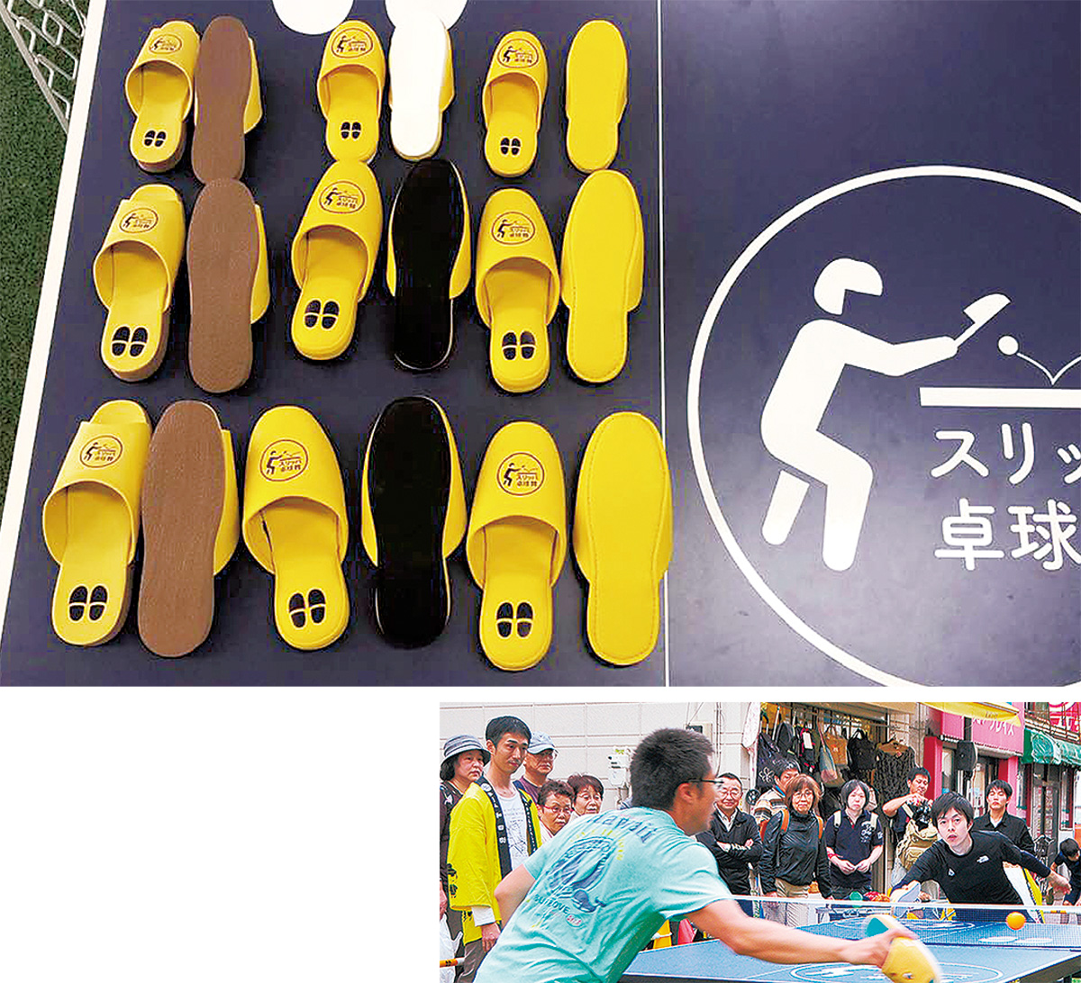 スリッパラケットから放たれたとは思えないスマッシュが決まったり、長いラリー合戦が繰り広げられる度に、集まった観衆から大きな歓声が上がるなど、今年も市内各地で熱戦が繰り広げられているスリッパ卓球大会では、これまで実行委員会が用意したスリッパや出場者が持参したスリッパがラケットとして使われてきた。中には段ボールやテープで打面を硬化するなど「工夫」を施すプレイヤーも見られた。