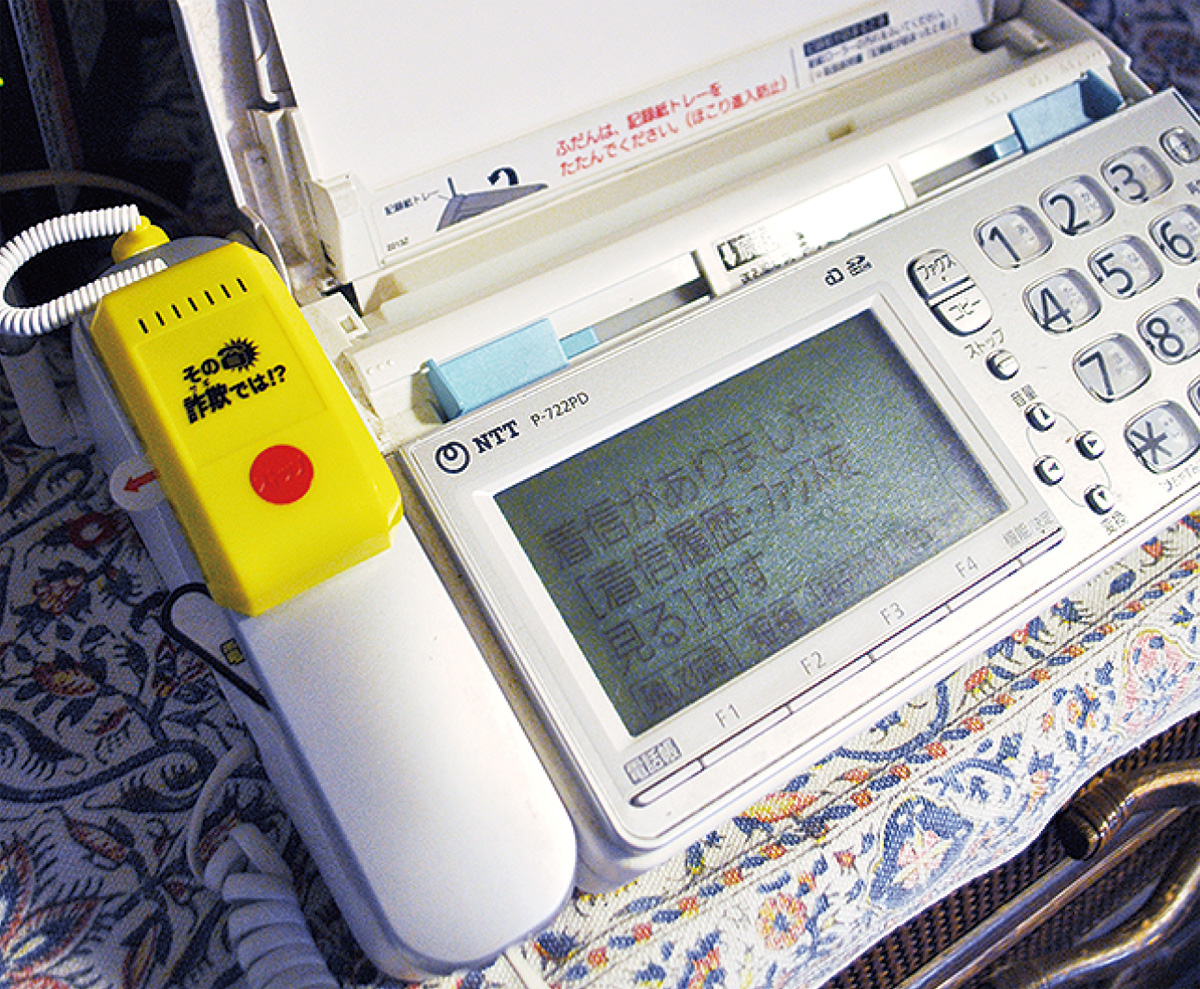 今回寄贈された防犯グッズは電話機に取り付ける簡易型自動録音機200個。受話器を取ると内部のセンサーが自動的に反応し、通話内容を自動録音し、相手の動きを制止するというもの。