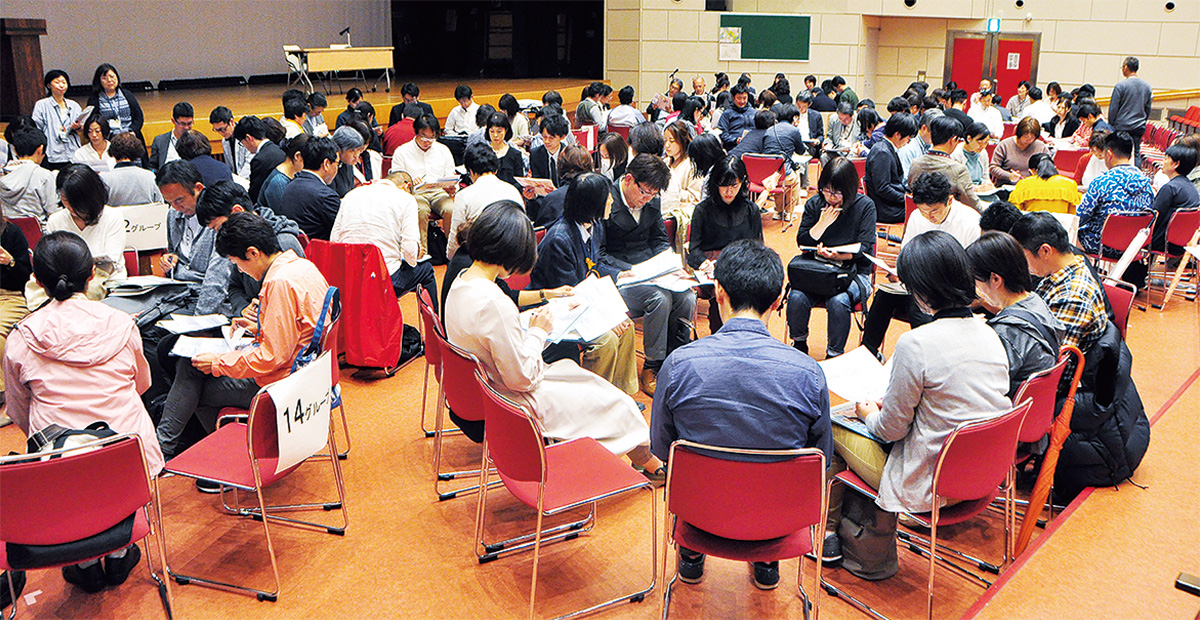 この日は区内各地区の医師や歯科医師、看護師、ケアマネージャーら約270人が参加。口腔衛生が全身に与える影響について金子歯科医院の金子守男医師が講演。その後、公会堂のホールと会議室を使って20のグループに分かれ、口腔衛生についてそれぞれの立場から意見交換を行っていた。