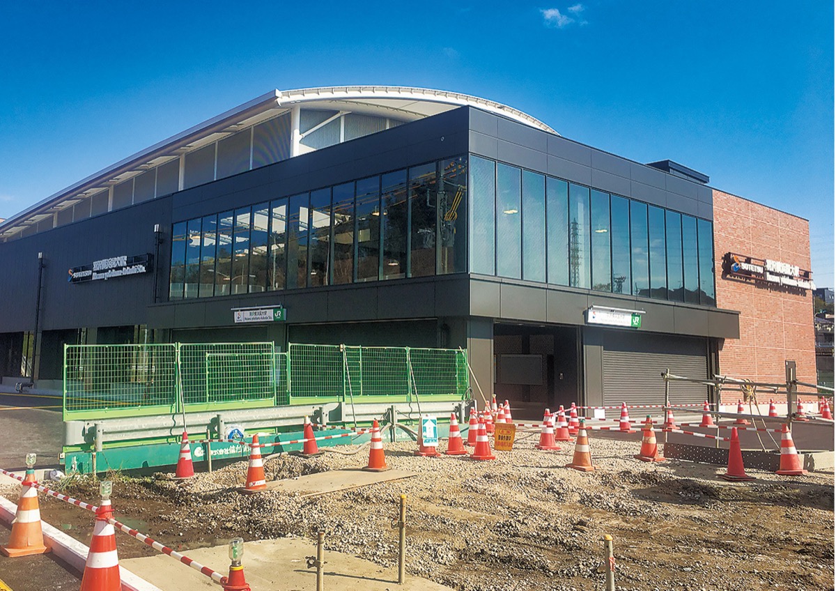 新駅はJR東海道貨物線の横浜羽沢駅付近に開設される。すでに駅舎などは整備ほぼ完了し、外周など最終的な工事が進められている段階だ。