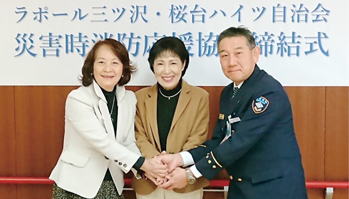 桜台ハイツ自治会(森山京子会長)と峰沢町にある「社会福祉法人いきいき福祉会特別養護老人ホームラポール三ツ沢」(小川秦子理事長)が11月11日、火災などの災害発生時に相互の消防応援協力を行うための覚書を締結した。ラポール三ツ沢はこれまで峰沢町岡沢町自治会、三ツ沢住宅自治会・同管理組合とも応援協力を締結しており、今回で3回目の締結となった。